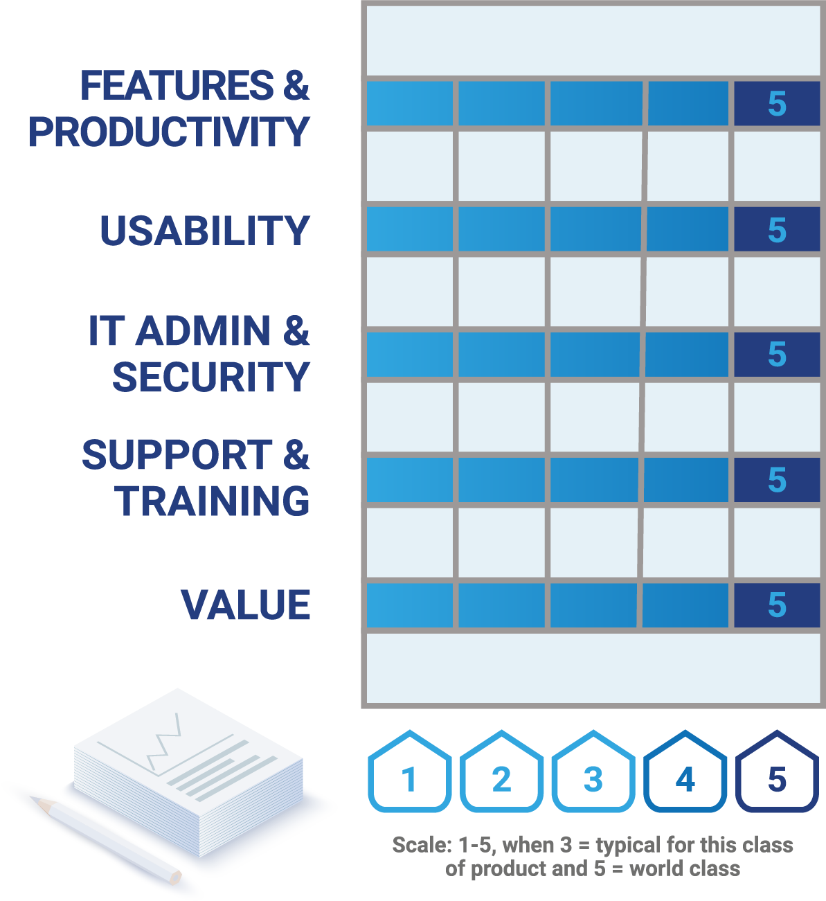«La única plataforma en la nube de Managed Print Services que ha obtenido una puntuación de 5 sobre 5 en todas las categorías de evaluación que analizamos…»